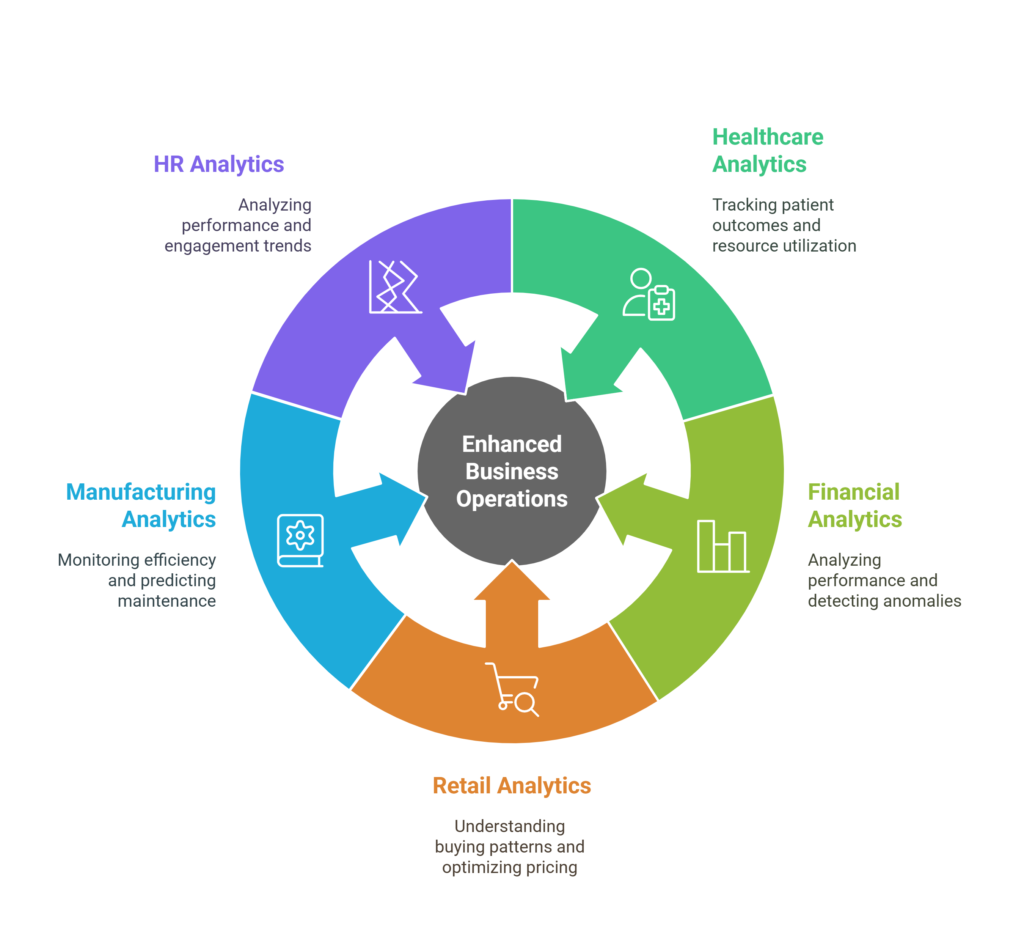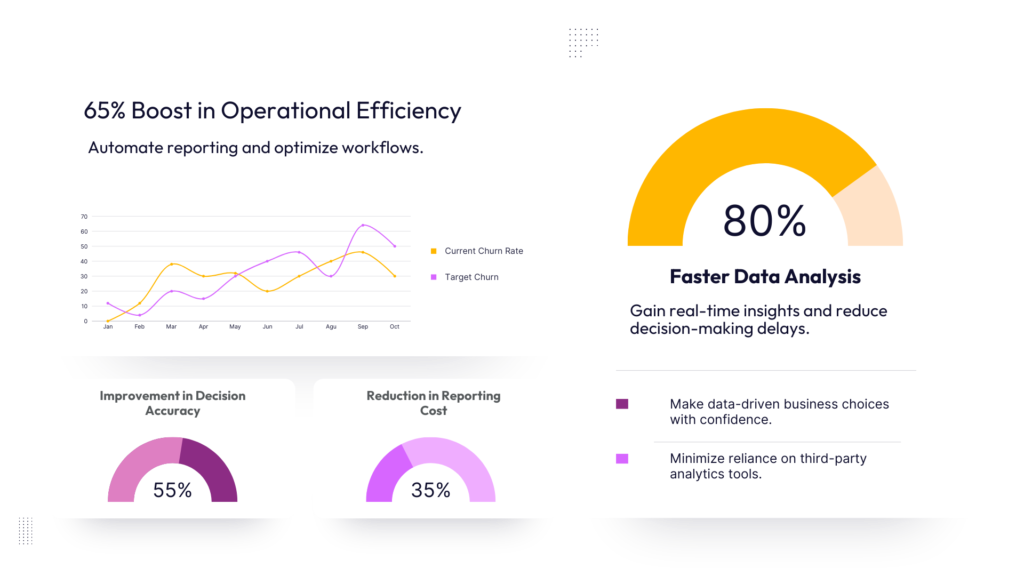 Power BI enables users to analyze data independently, reducing reliance on IT teams. With seamless data integration and flexible deployment options, businesses can gain a holistic view of their operations.